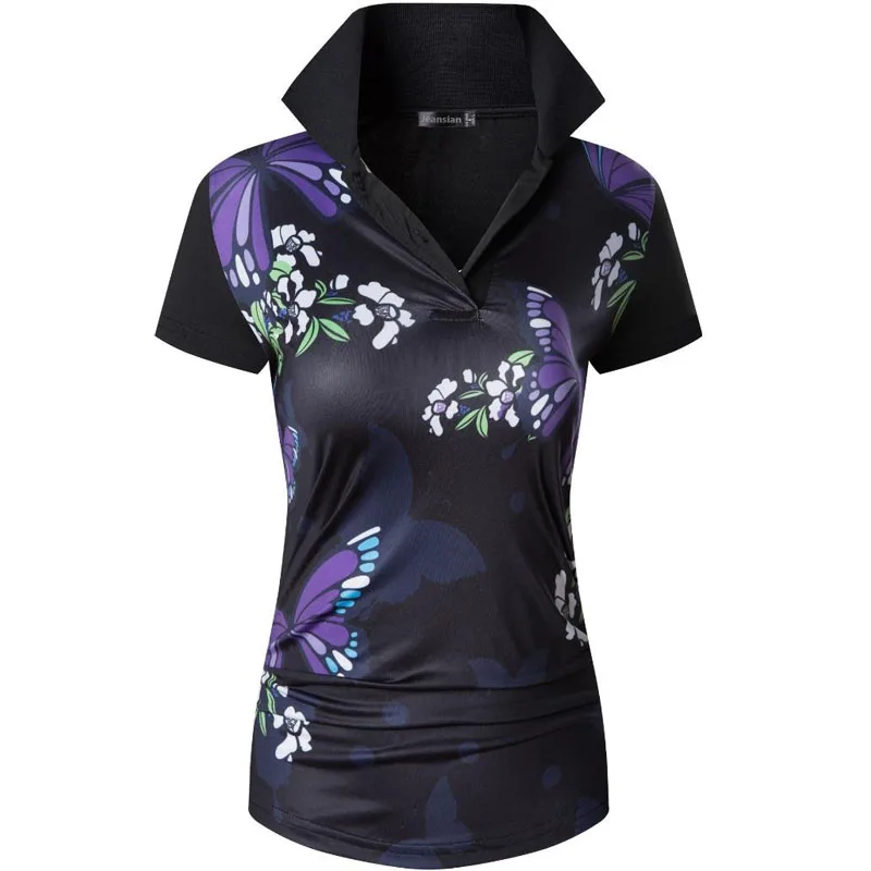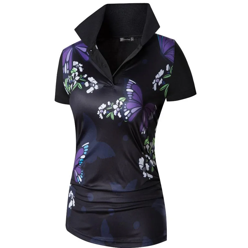 Женская футболка с коротким рукавом, в японском и азиатском стиле, поло с цветочным принтом, Поло для гольфа, тенниса, бадминтона SWT311