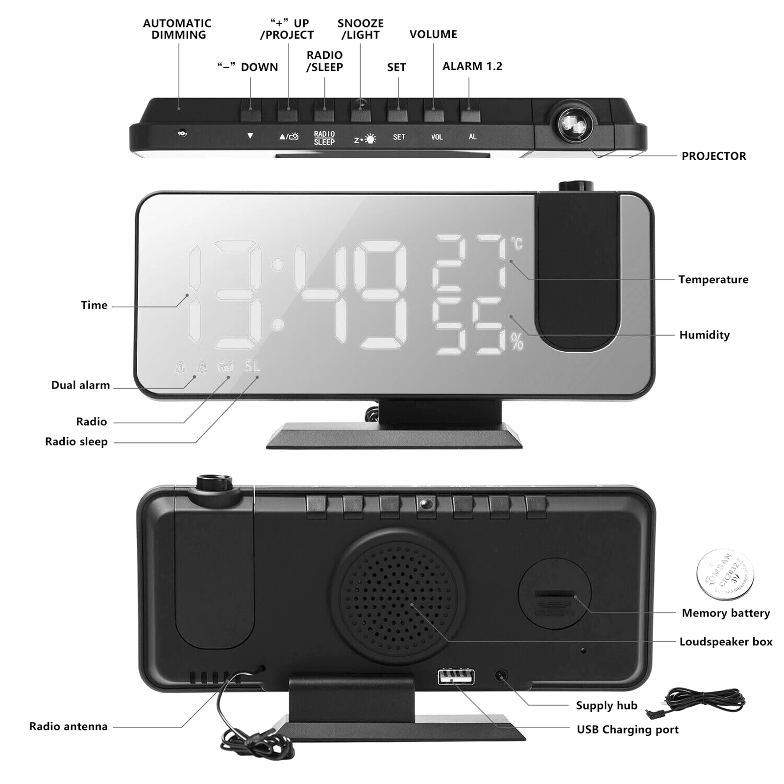 Цифровой светодиодный Будильник с проекцией температуры и влажности, часы WXV, распродажа