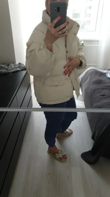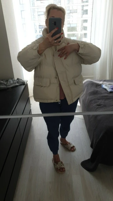 Заказала курточку на позднюю осень. Думаю само то. Для зимы тонковата. Цвет как на картинке.на свой 44-46 взяла Lz лёгкий оверсайз как я и хотела. Спасибо за товар !