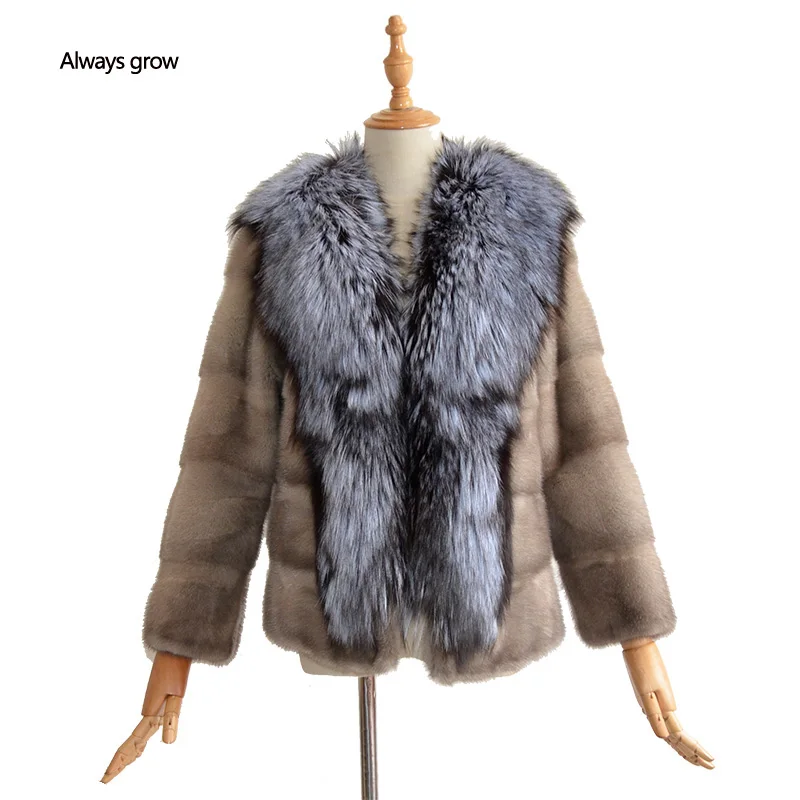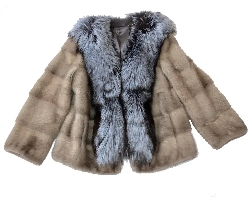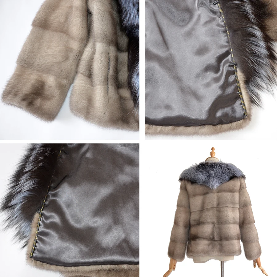 Шуба женская из натурального меха норки, короткая, с V-образным вырезом