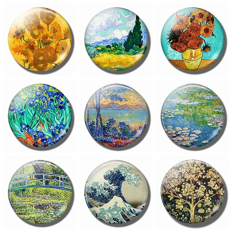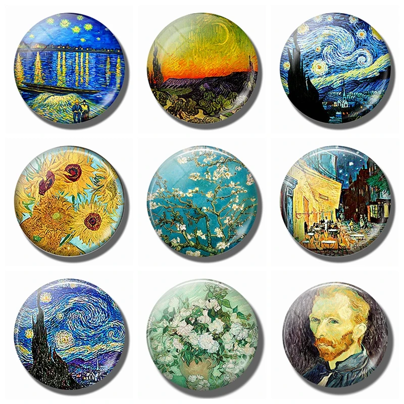 Магнитная наклейка Ван Гога, 50 мм, ирисы, звездная ночь, Подсолнухи, художественный стеклянный кристалл, пейзаж, магнит на холодильник для Декор для холодильника