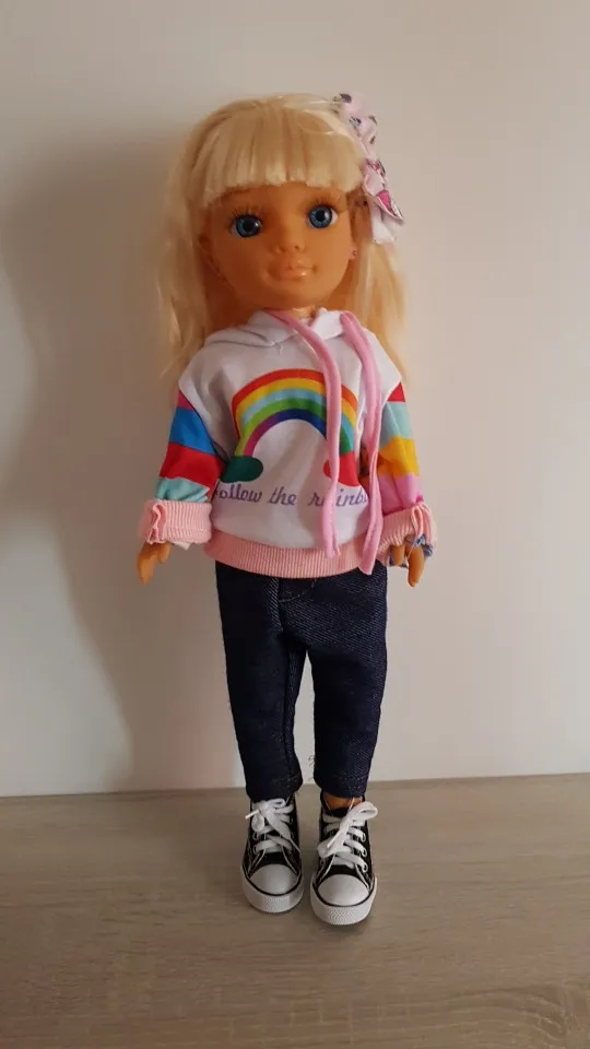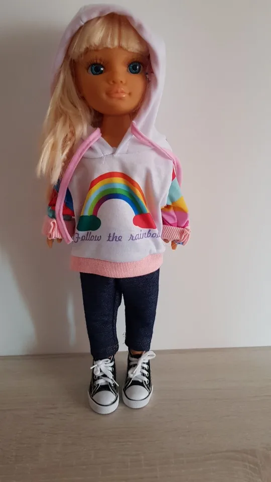 Genial para una nenuco de 43cm. Igual o mejor que las ropas que venden en las jugueterías, sobre todo teniendo en cuenta el precio.
