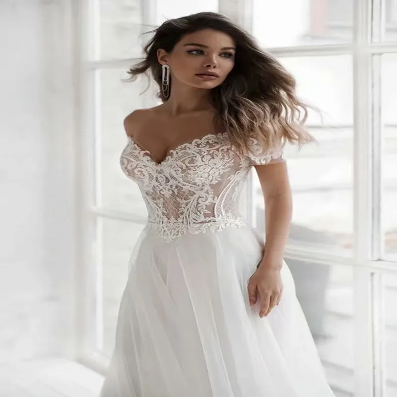 2022 Свадебные платья с открытыми плечами сердечком, Классические с...