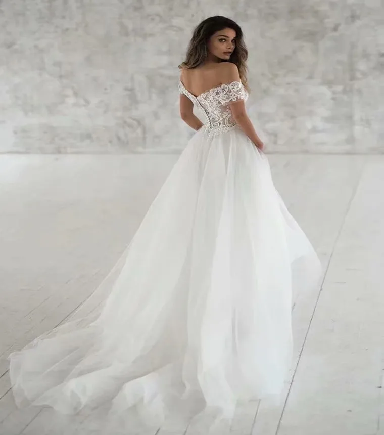 Свадебное платье с открытыми плечами, простое длинное платье невесты