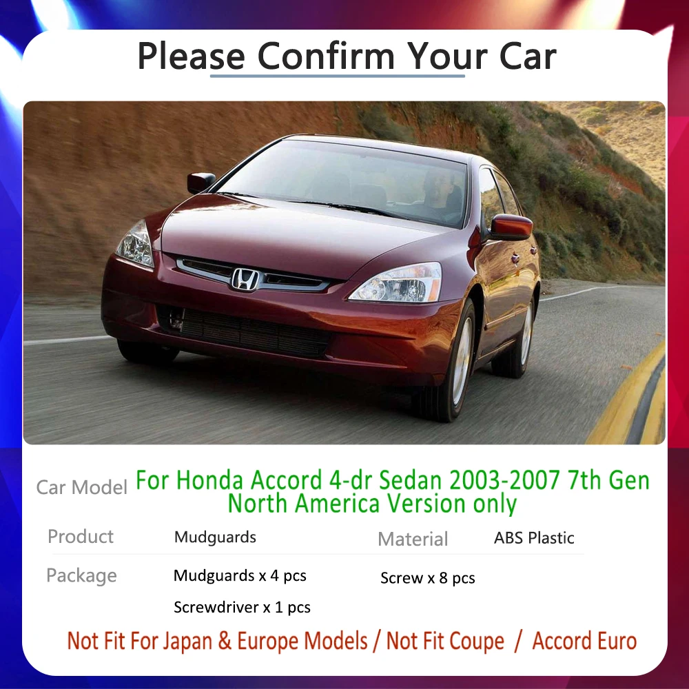 Только для Honda Accord 4-dr Sedan 2003-2007 7-го поколения, версия Северной Америки