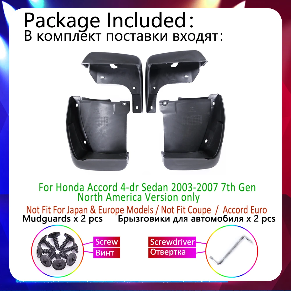 Шины для легковых автомобилей Крыло грязь с клапаном для Honda Accord Sedan 2003 2007 2004 2005 2006 7th 7 пок брызговик авто-Товары аксессуары