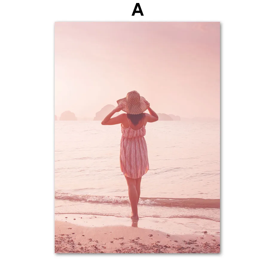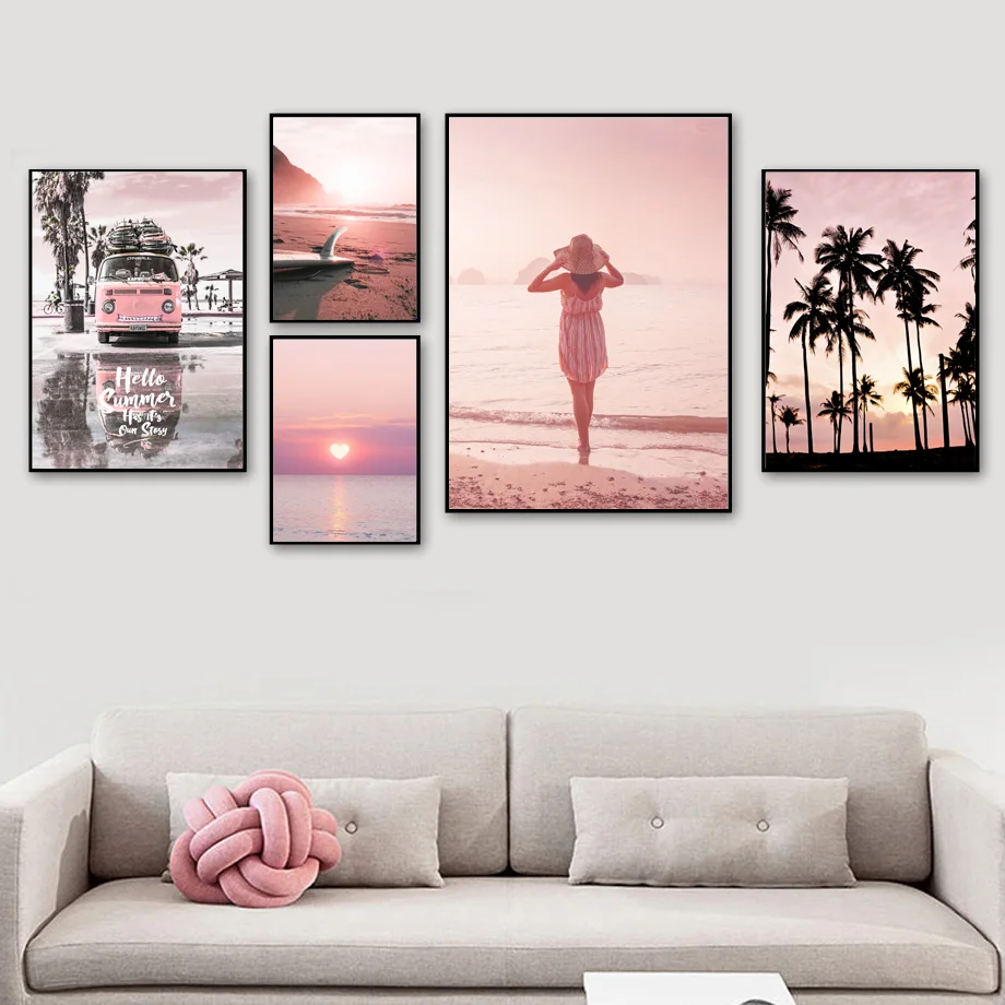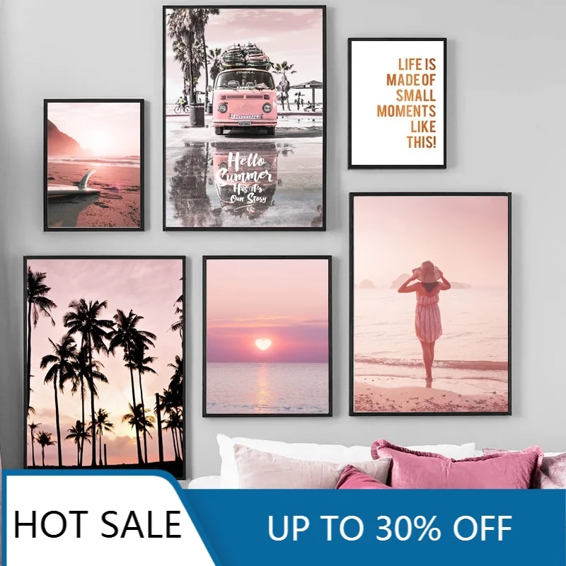 Настенные постеры в скандинавском стиле, розовые морские пляжные ра...