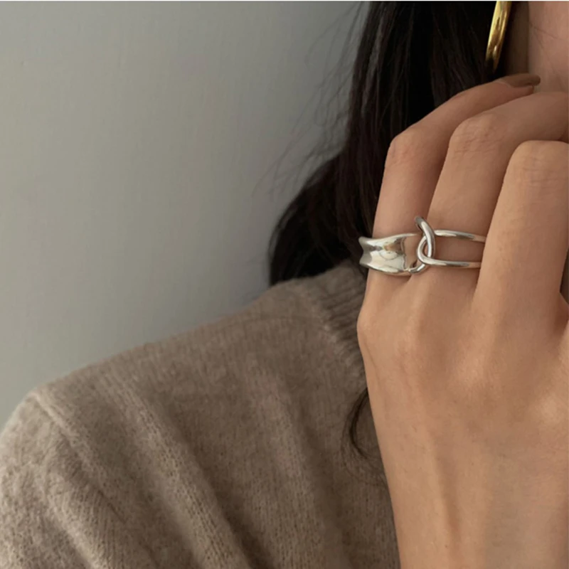 AOMU 2020 Новинка 2 шт.компл. корейский Асимметричный переплетенный полый металлический простой модный набор открытых колец для женщин ювелирные изделия для вечевечерние в стиле панк подарок