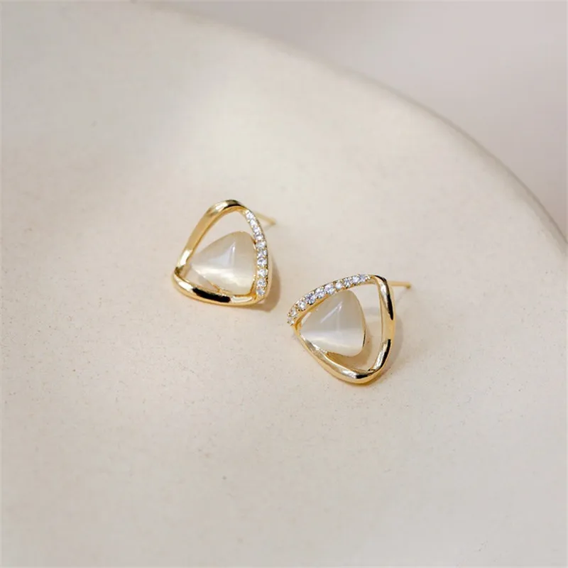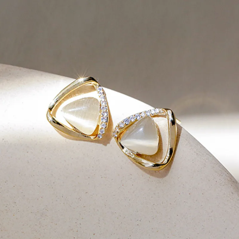 Женские серьги с камнем кошачий глаз, белого лунного света