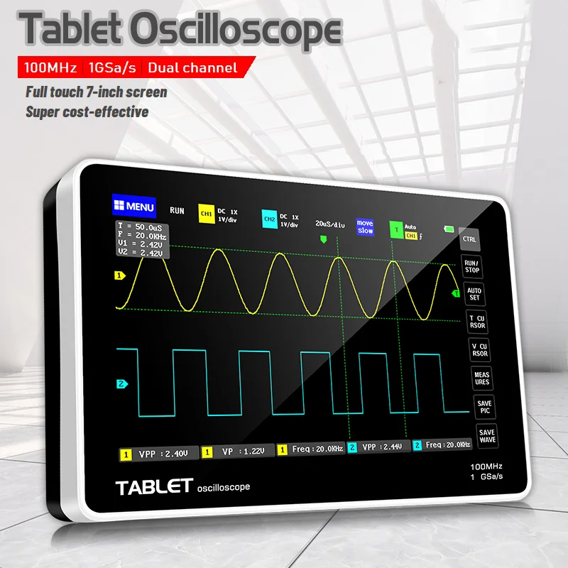 Цифровой мини-осциллограф с планшетом, 2-канальный осциллограф с ча...