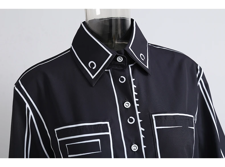 * Осенние женские черные белые повседневные блузки с длинным рукаво...