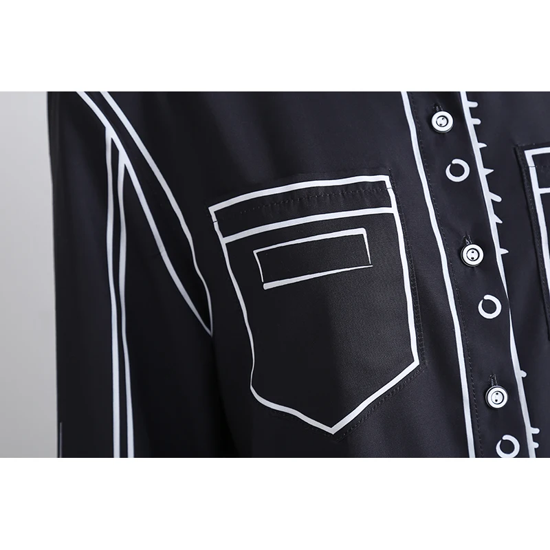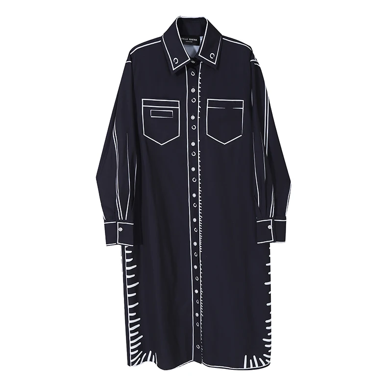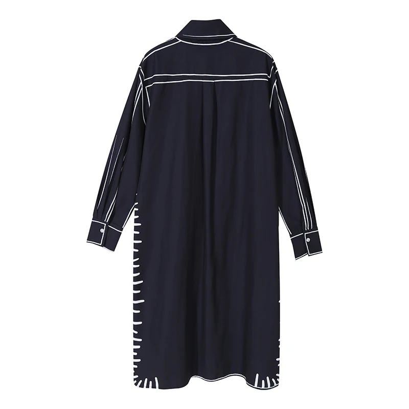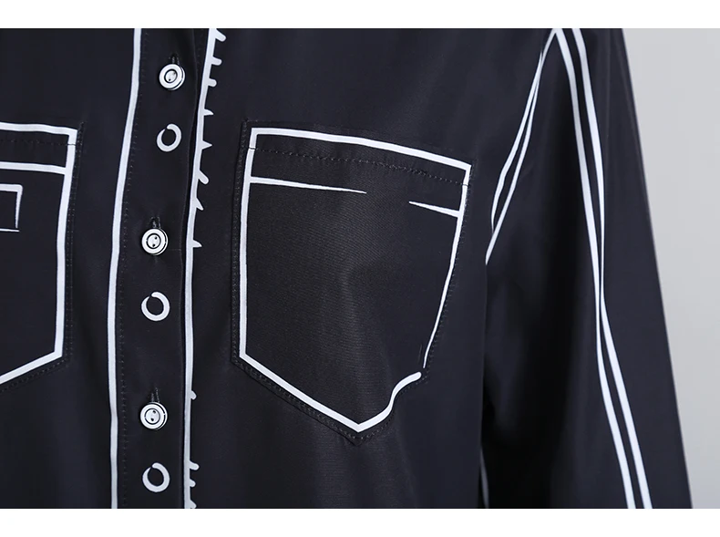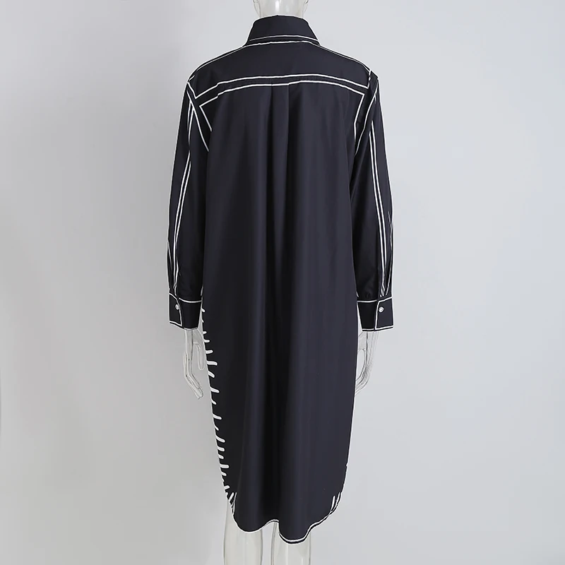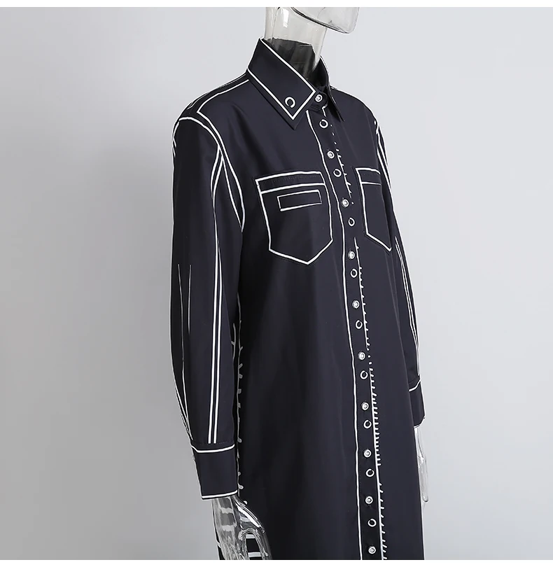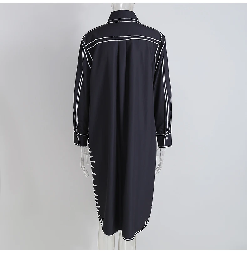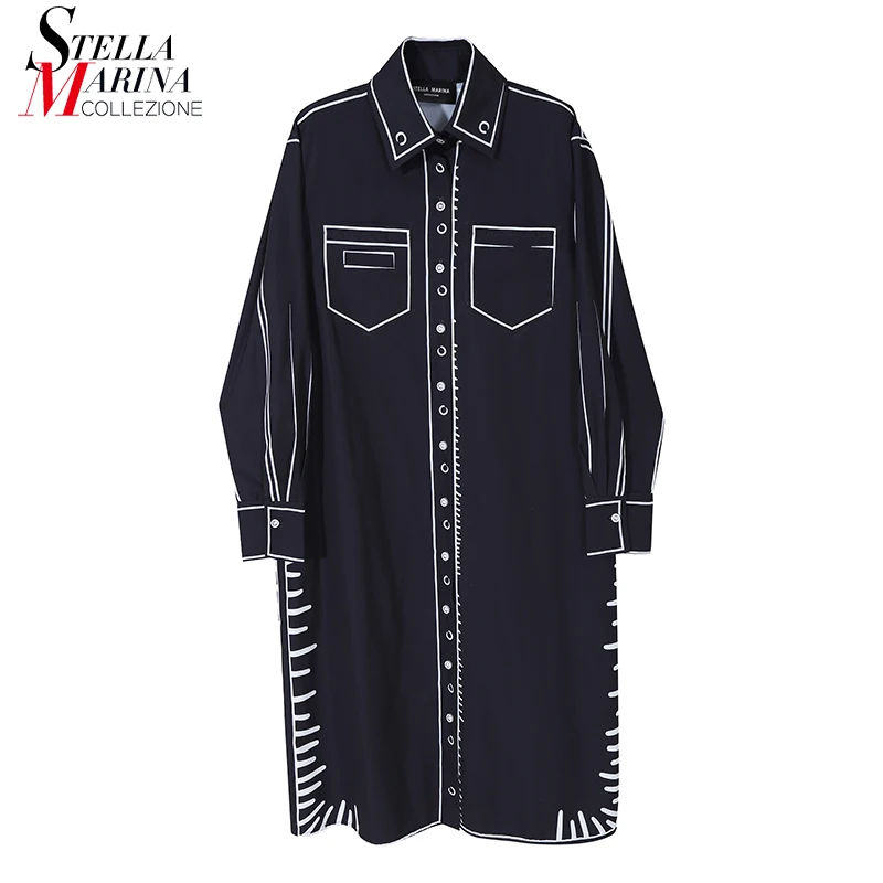 Новинка, женское платье-рубашка с принтом размера плюс, Осеннее черное платье-рубашка с накладным карманом, прямое платье средней длины, женские повседневные платья-миди, Robe Femme 6741
