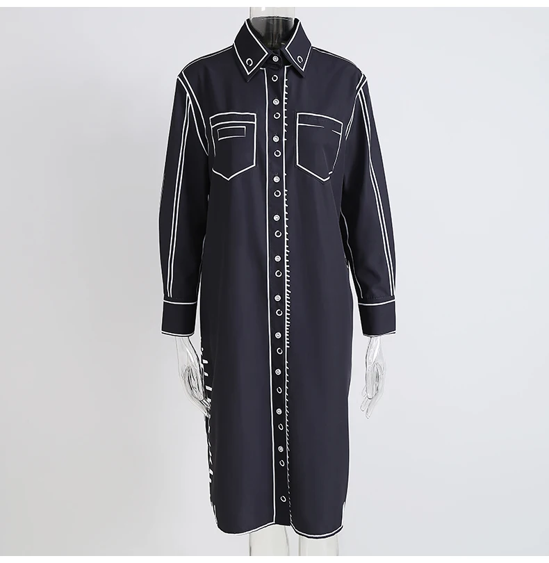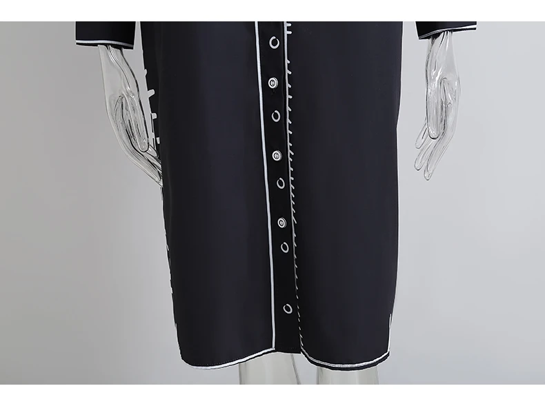 Новинка, женское платье с принтом, большие размеры, Осеннее черное платье-рубашка с фальш-карманом, прямое миди женское повседневное миди