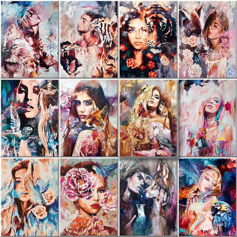 Картина для рисования по номерам, девушка, ручная роспись, абстракт...