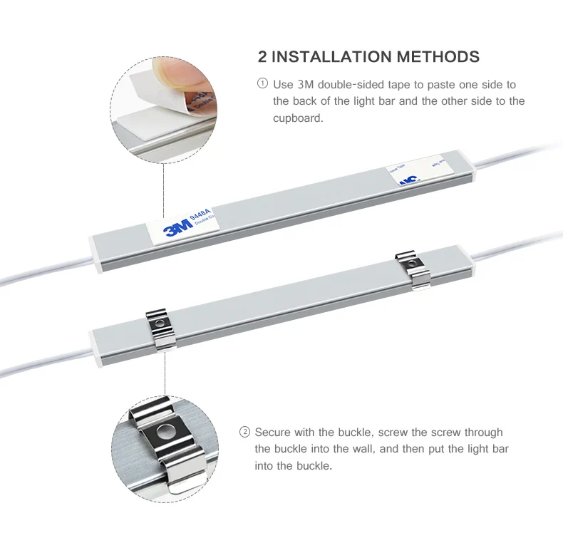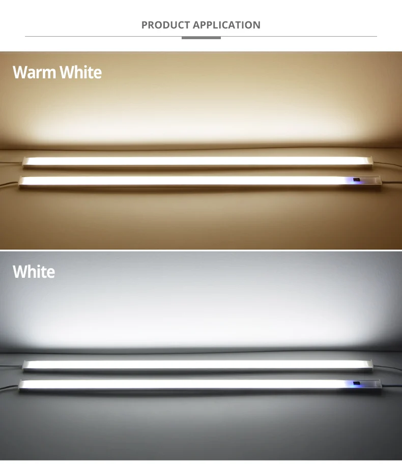 Цвет освещения: белый/теплый белыйТип переключателя: ручной переключатель датчика разверткиМатериал корпуса: алюминийДлина: 30 см/40 см/50 смМощность: 5 Вт/6 Вт/7 ВтНапряжение: DC12VАдаптер питания: штепсельная вилка европейского стандарта/штепсельная вилка американского стандартаЦветовая температура: теплый белый (2800K-3000K)/белый (6000K-6500K)Средний срок службы (часов): более 35 000 часовРасстояние обнаружения: 2-5 смCRI:80