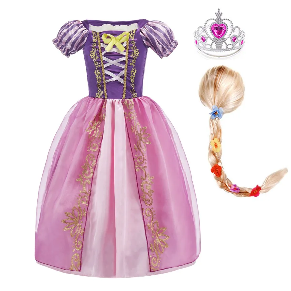 С милым принтом Рапунцель для девочек костюм для детей платья принцессы Спящая красавица Карнавальный костюм для детей вечерние модные Маскировка одежда для дня рождения