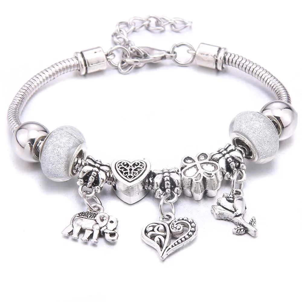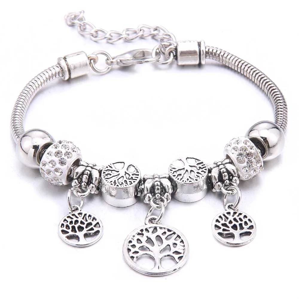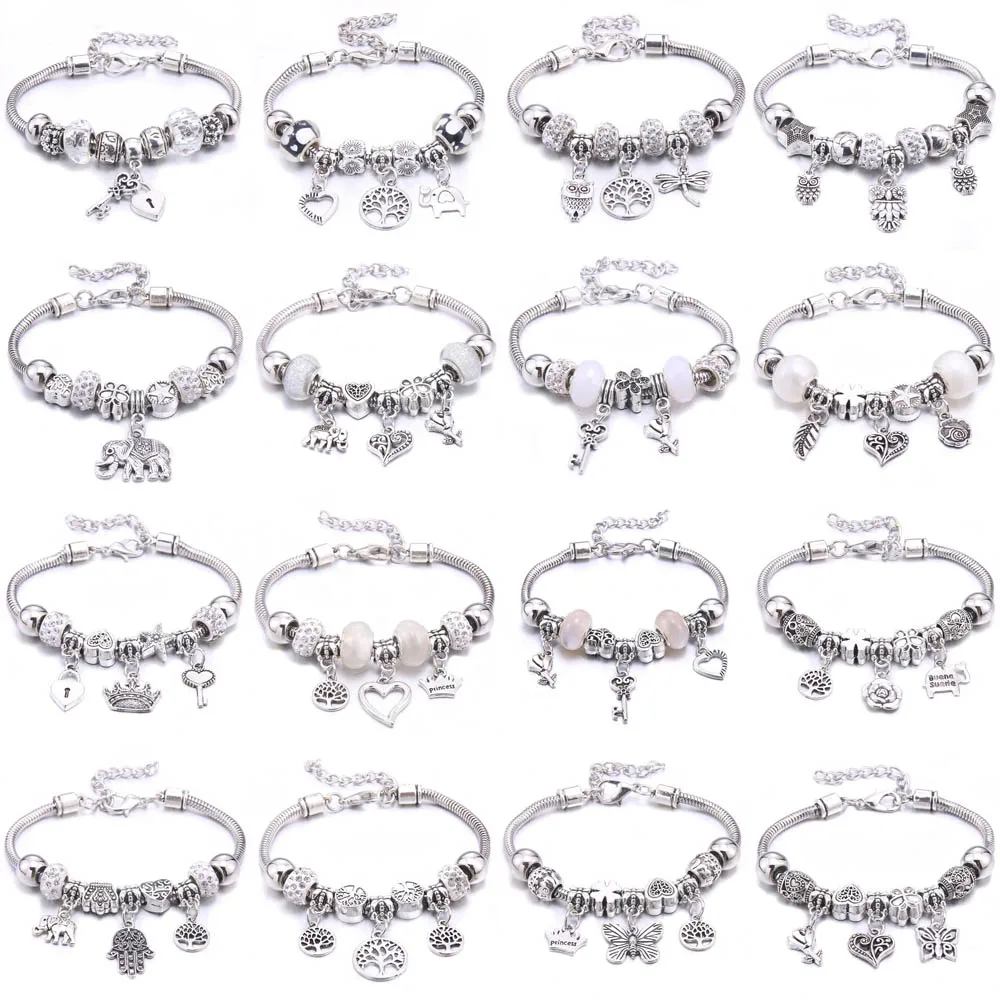 Браслет женский из натурального камня, с белыми кристаллами, с подвеской в виде цветка и бабочки
