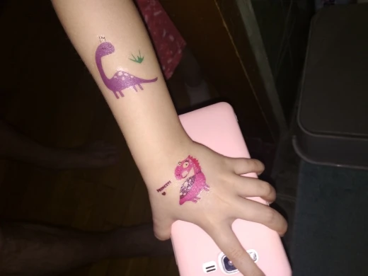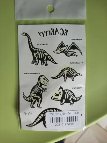 Конкретно эти динозавры - хорошие, долго держатся. Брала у этого же продавца другие светящиеся татухи - растрескались и поотваливались сразу же, даже день не продержались. А эти - рекомендую. Доставили быстро, буквально за пару недель.