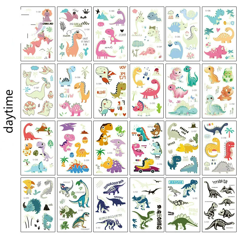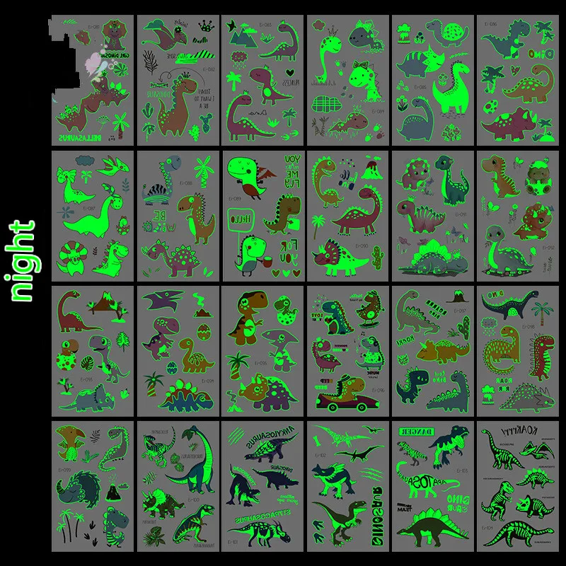 Светящиеся динозавры, детские наклейки-татуировки, Мультяшные забавные светящиеся наклейки, временные на лице, руки, ноги для детей, украшение для тела, Новинка