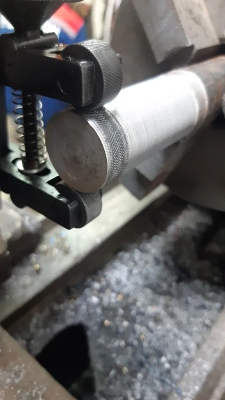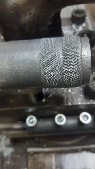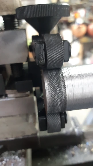 прикольная штука, материал вроде даже термообработан, не сыромяга. теперь минусы: сильно люфтит в шарнирных сочленениях, из-за этого ролики не получается направить по одной полосе, на фото видно величина смещения накоток от каждого ролика. причем с крупной накаткой свезло и она не сместилась. и 2й минус державка - ниочем, мелкая очень. короче без напильника не обойтись, а за такой ценник хотелось бы..