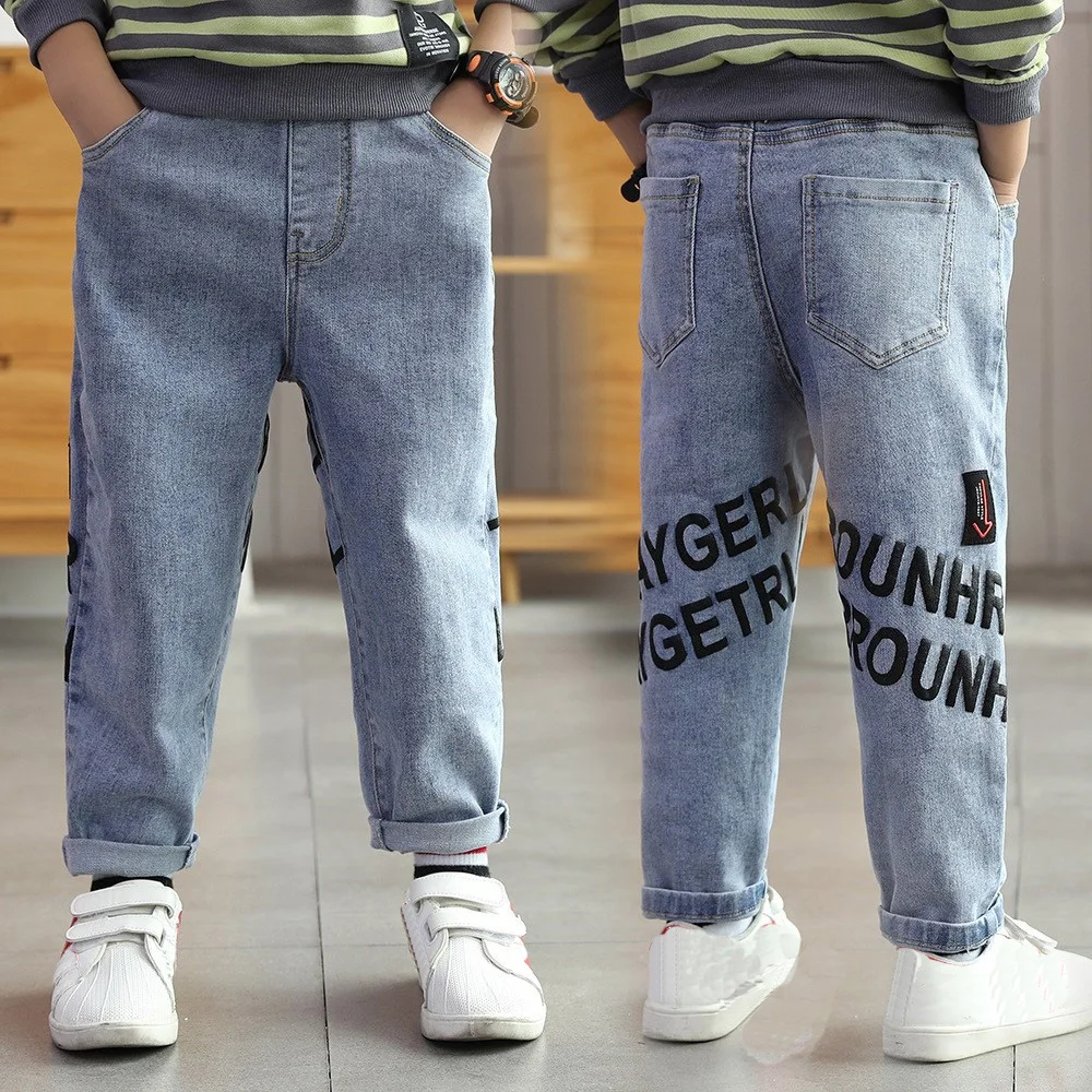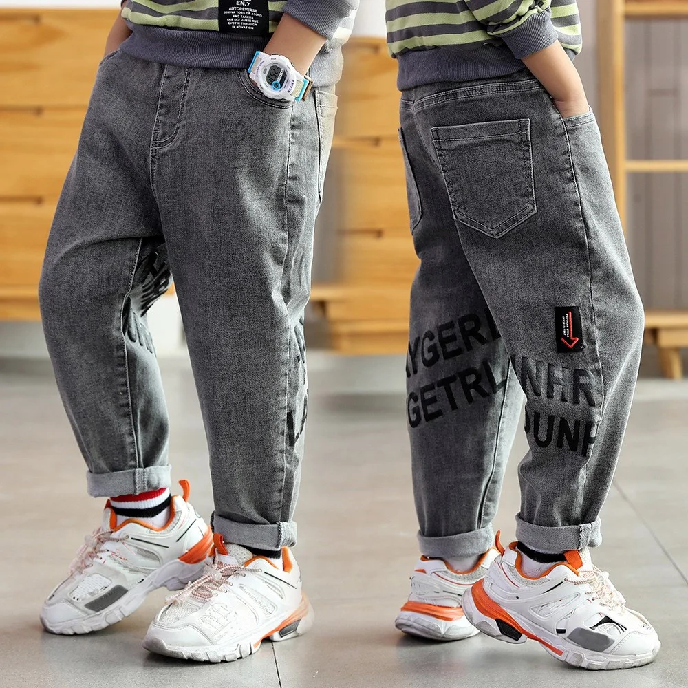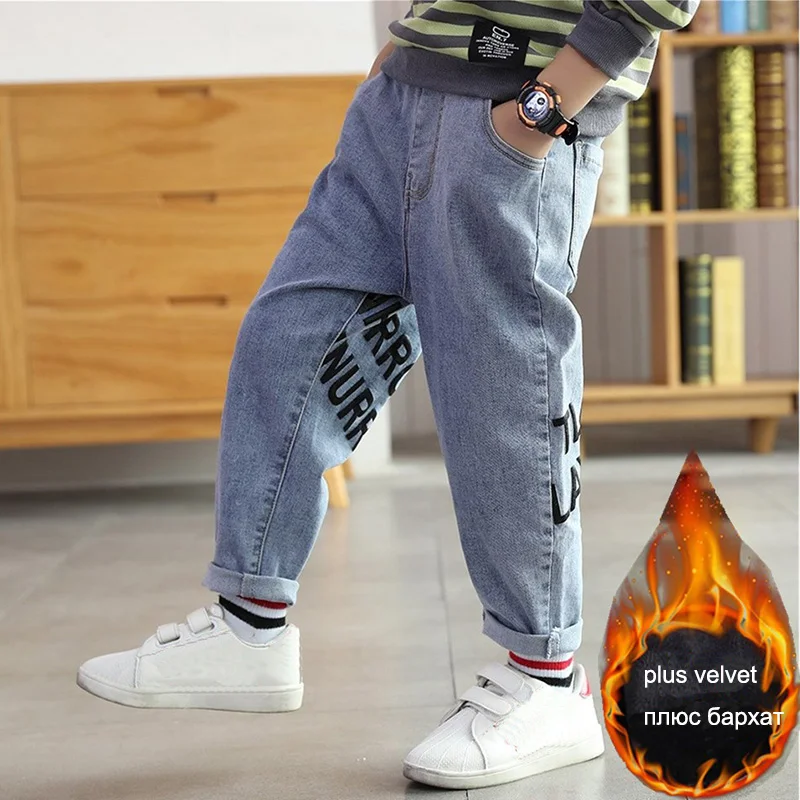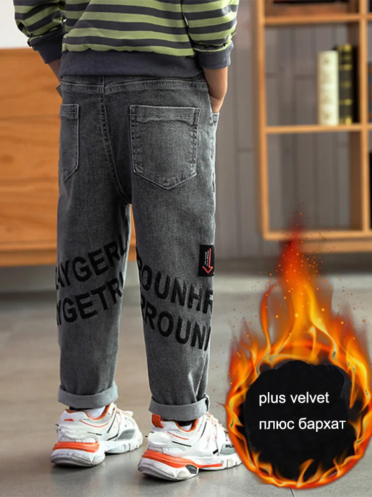 Детские джинсы EU1 для мальчиков, детские брюки, теплые брюки для подростков, бархатные осенне-зимние детские модные джинсы, плотные