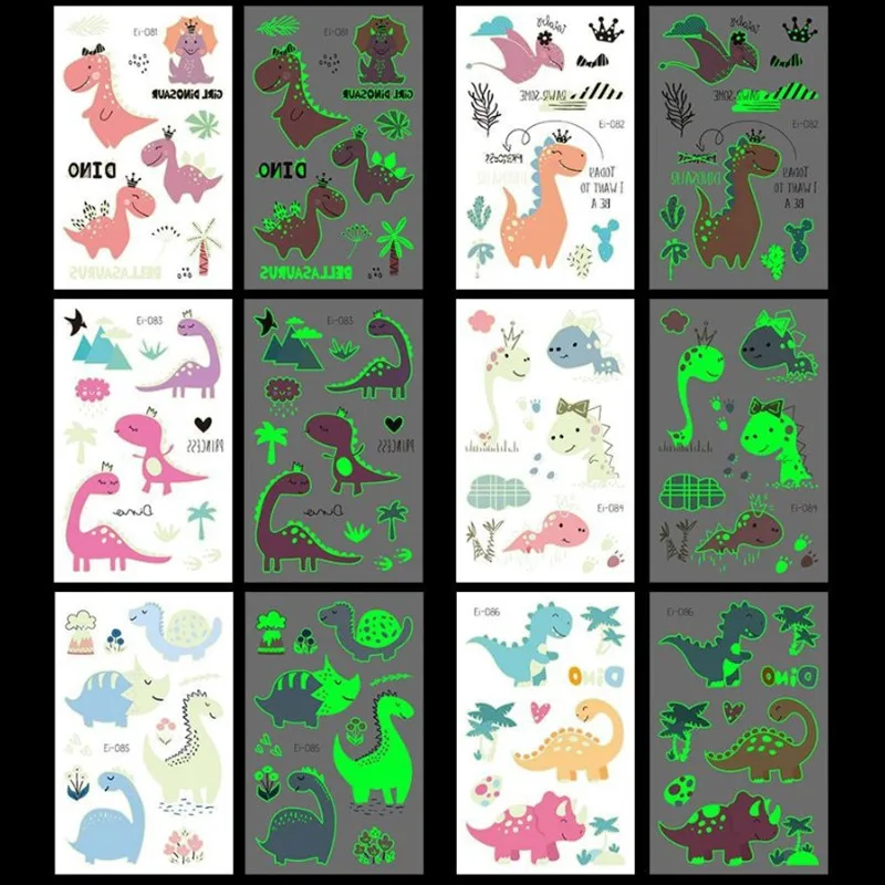 Милые наклейки на татуировку динозавра светящиеся Детские Водонепроницаемые временные искусственные татуировки светящаяся паста на лицо рука ноги для детей мальчиков