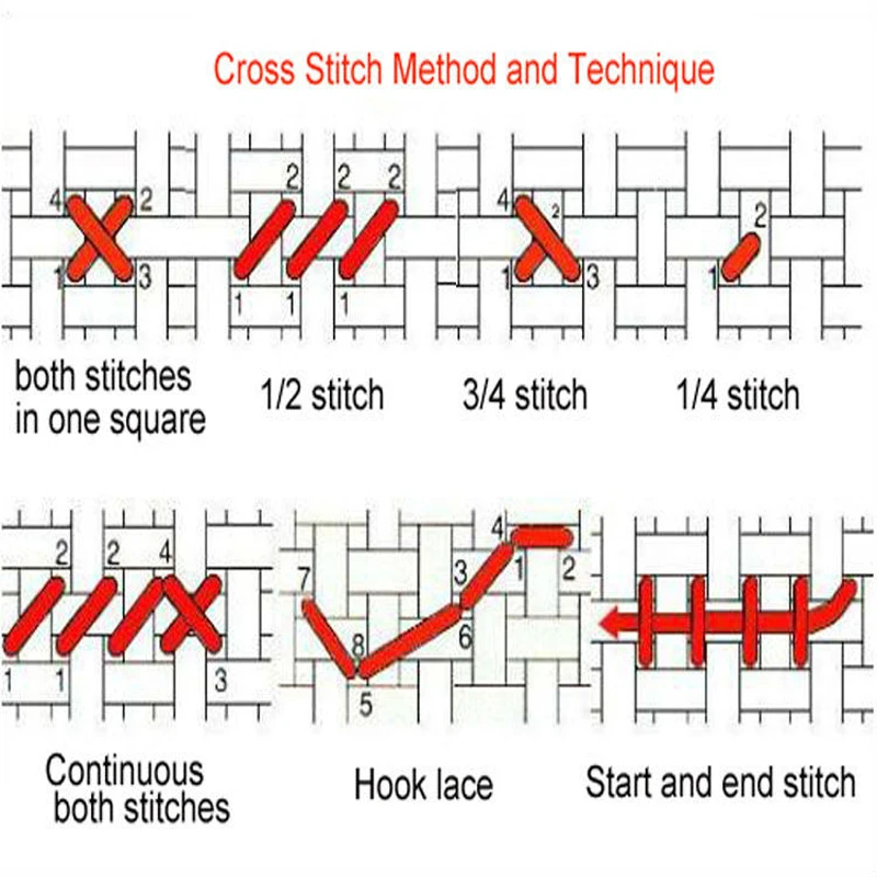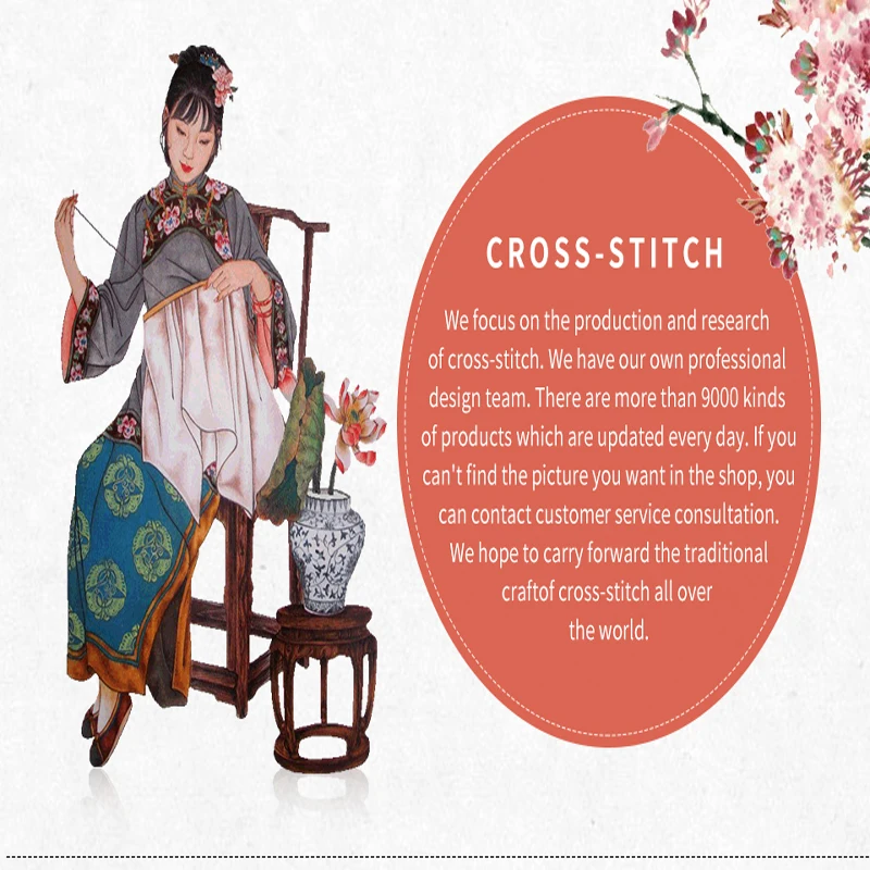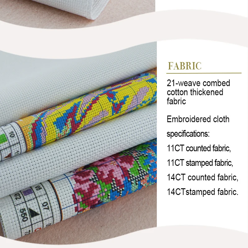 100% хлопковая нить, холст Aida, иглы, бумажная Таблица (Инструкция на английском языке, цветная печать, размер А4/страница)