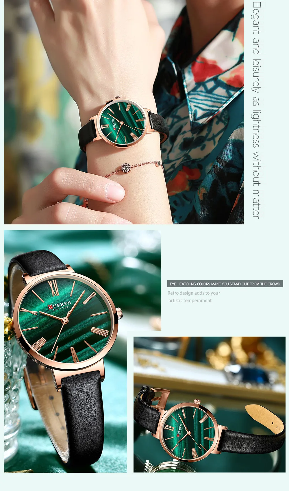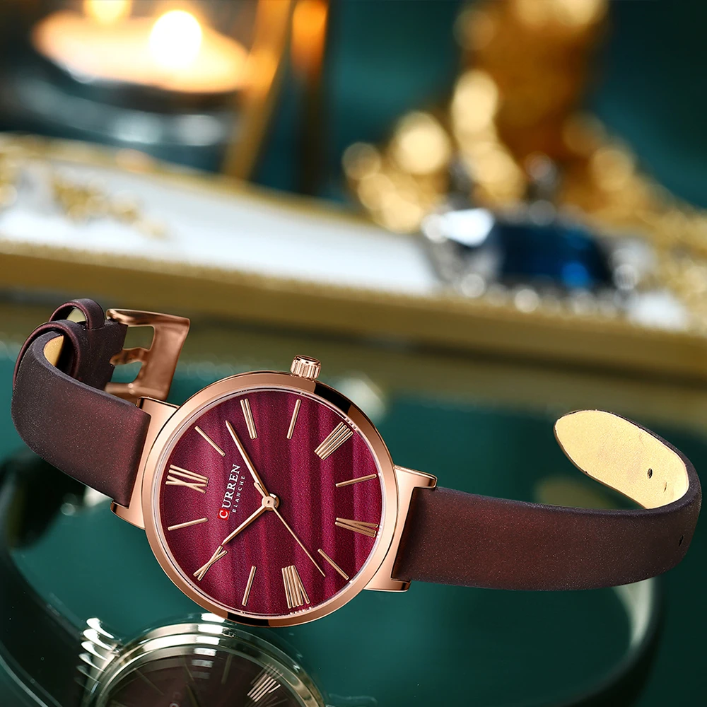 CURREN женские часы с кожаным ремешком Роскошные Кварцевые часы водонепроницаемые модные креативные наручные часы для женщин и девушек