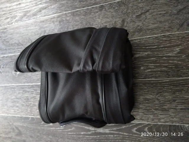 Нет подкрепления в более низком диапазоне (снизу). Только длинный плечевой ремень. Ручка (нажимные ручки) на молнии очень низка. Чрезвычайно неприятный сильный запах после растворителя.