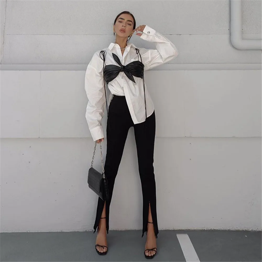 Элегантные женские брюки с разрезом спереди и молнией, однотонные брюки-клеш с высокой талией, облегающие леггинсы для весны и осени