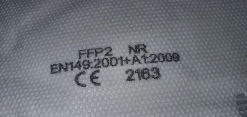 Черный, серый и синий цвет KN95 маски не напечатаны "EN149:2001 + A12009 CE FFP2 2163 NR", только белый/розовый/хаки/зеленый/красный цвет напечатано это