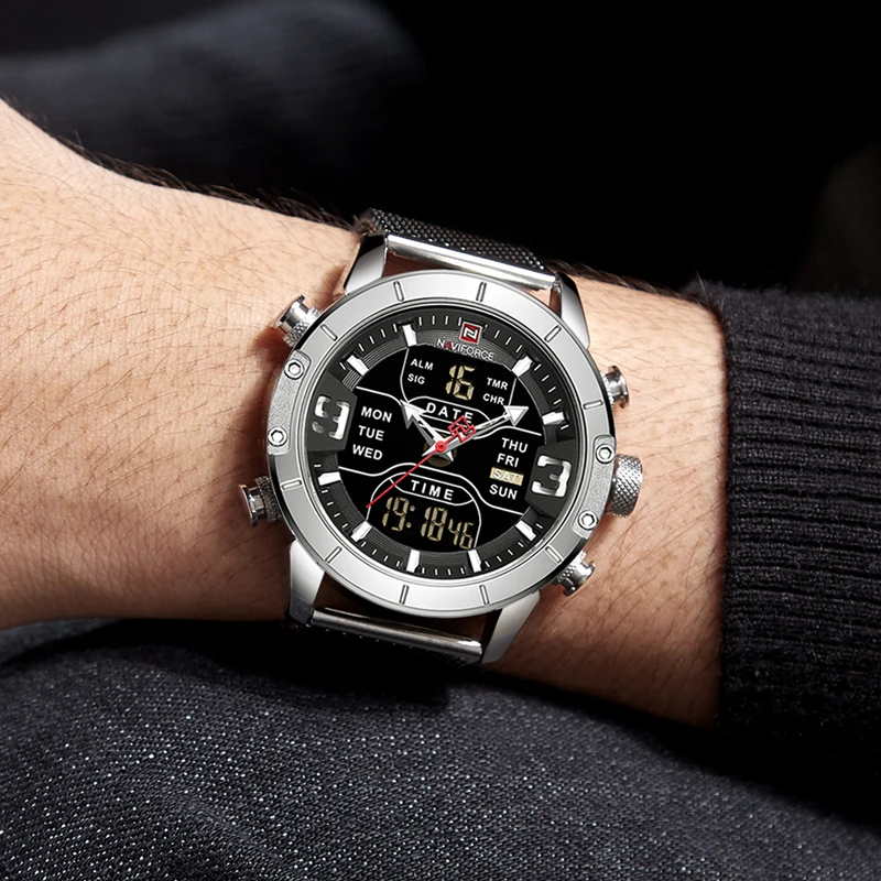 Часы NAVIFORCE Мужские Аналоговые, цифровые, из нержавеющей стали, ...