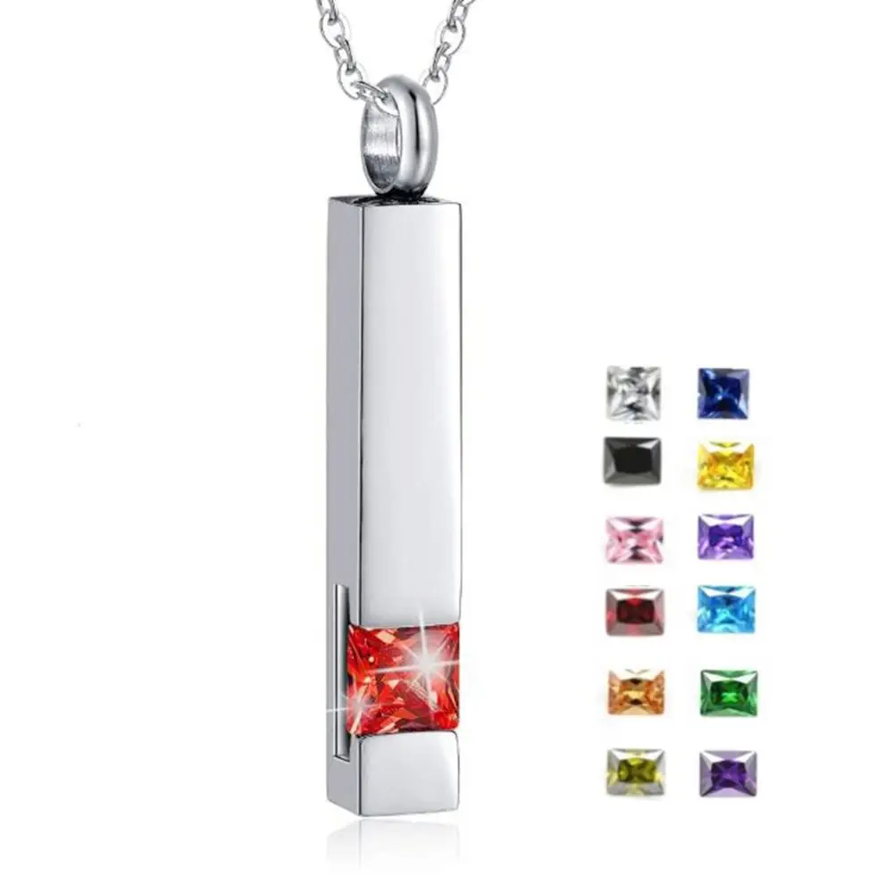 Ожерелье унисекс из нержавеющей стали с фианитами 12 видов, декоративное ожерелье для праха, кулон-урна на память по месяцу рождения