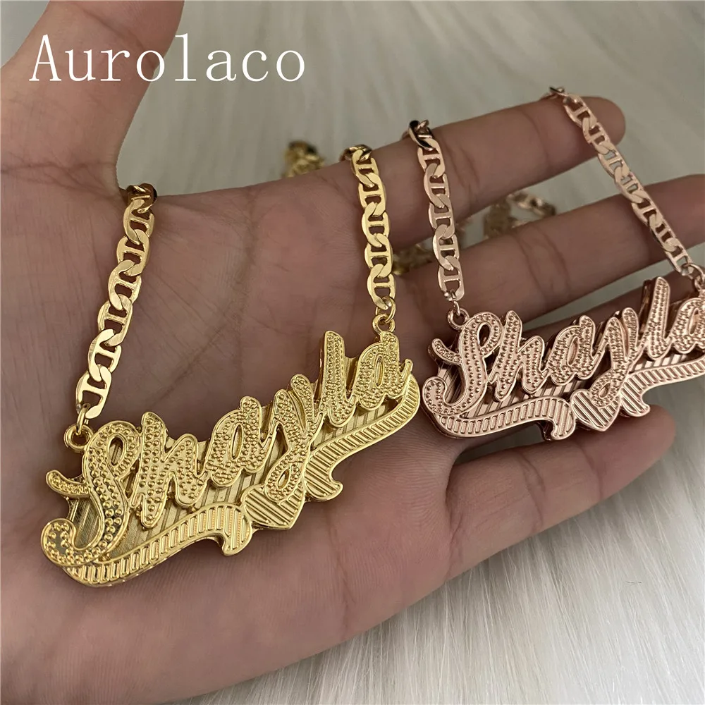 AurolaCo пользовательское имя ожерелье Личность Нержавеющая сталь золотое ожерелье-чокер кулон-табличка с именем ожерелье ювелирных изделий свадебный подарок