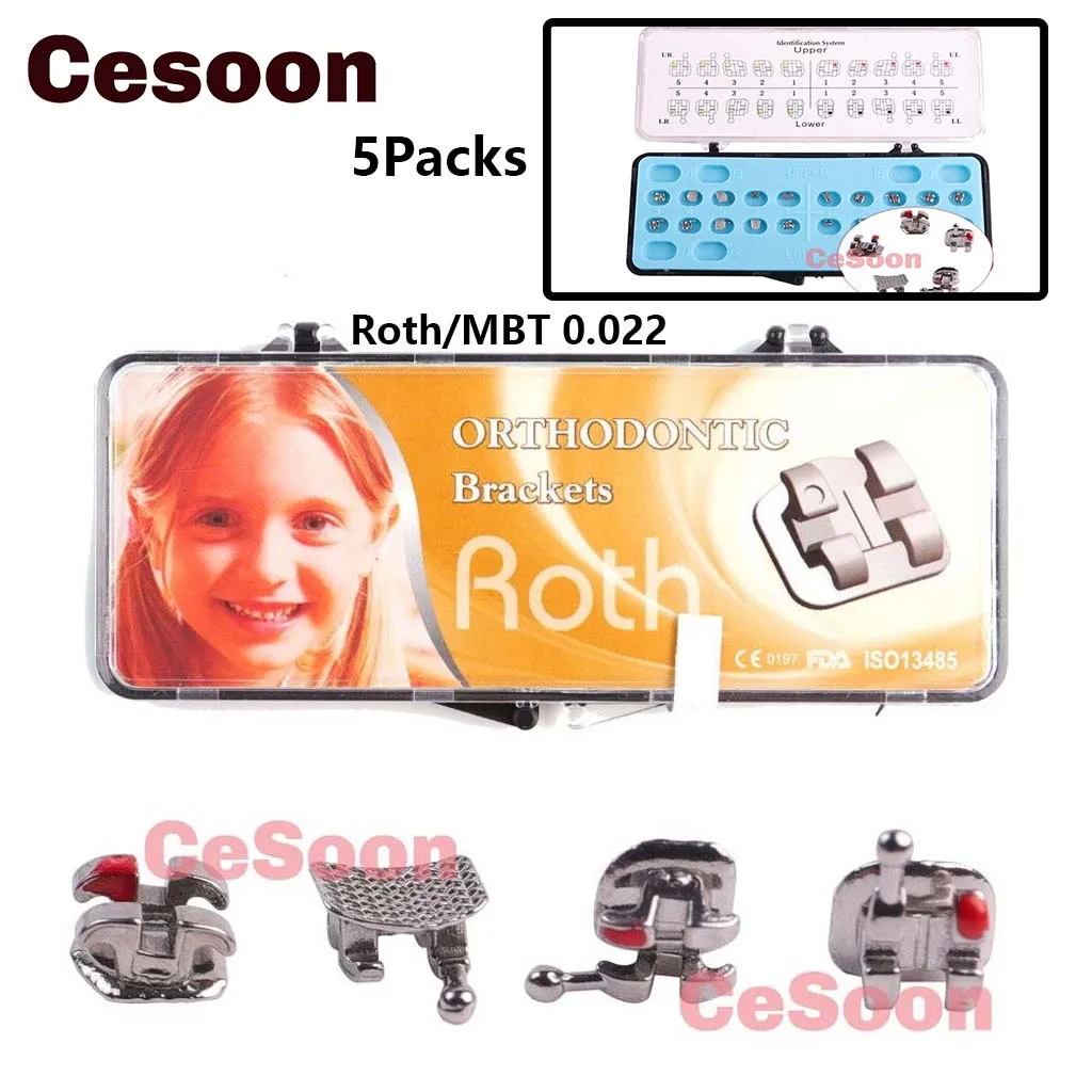 5 упаковок, Стоматологические Ортодонтические металлические скобки с сетчатым основанием, скобки для сварки Mini RothMBT Solt 0,022 крючков 3 4 5