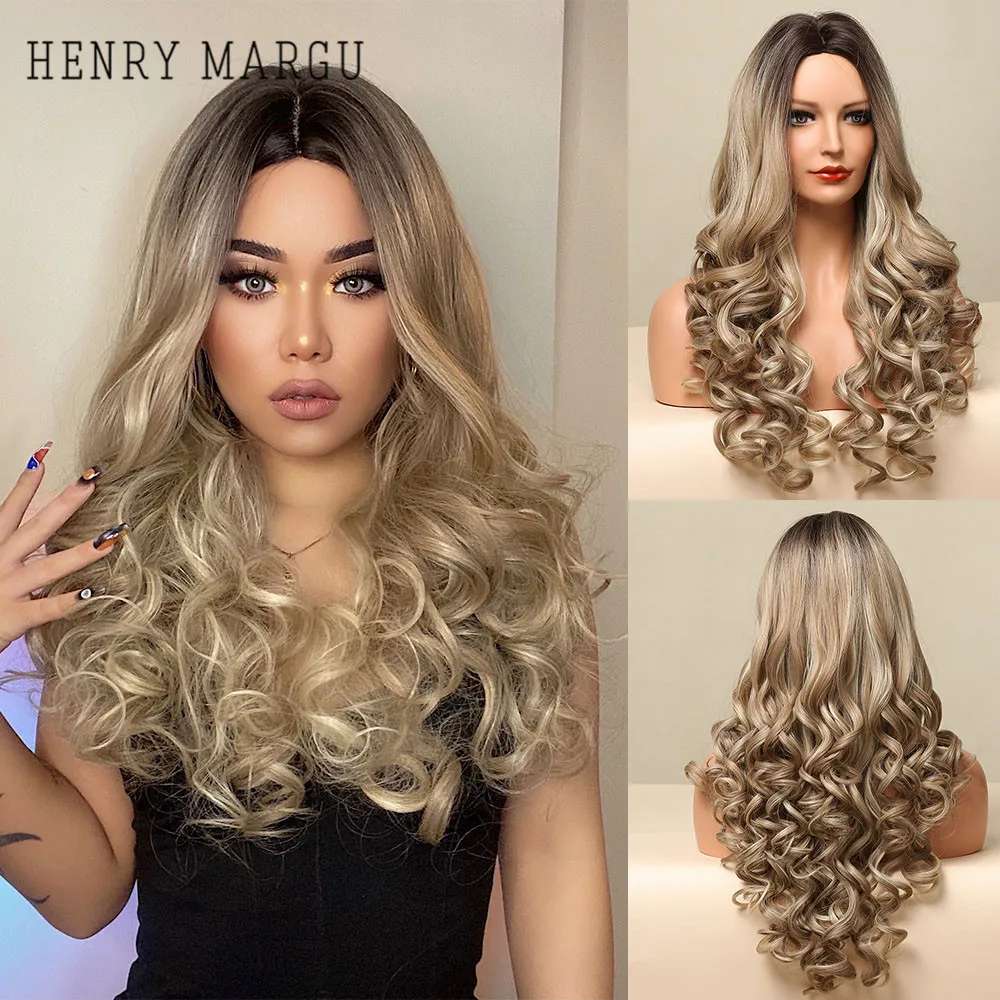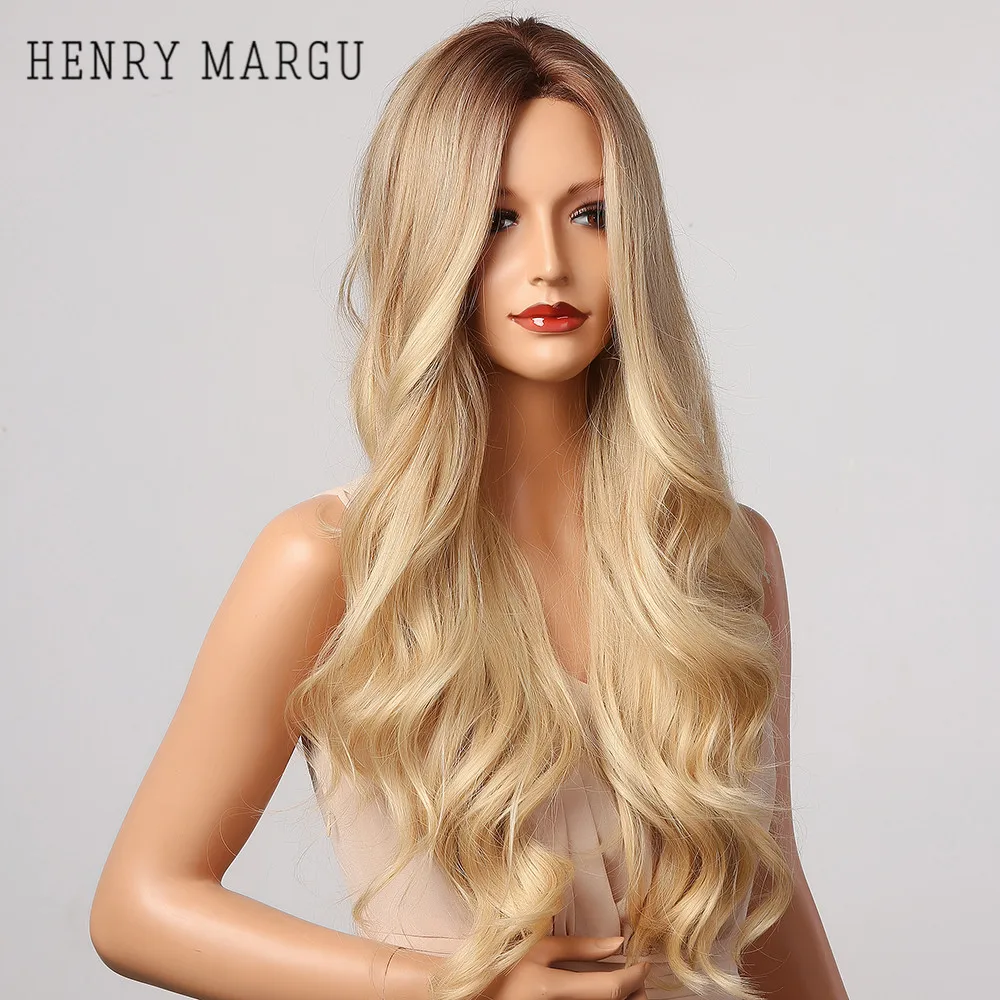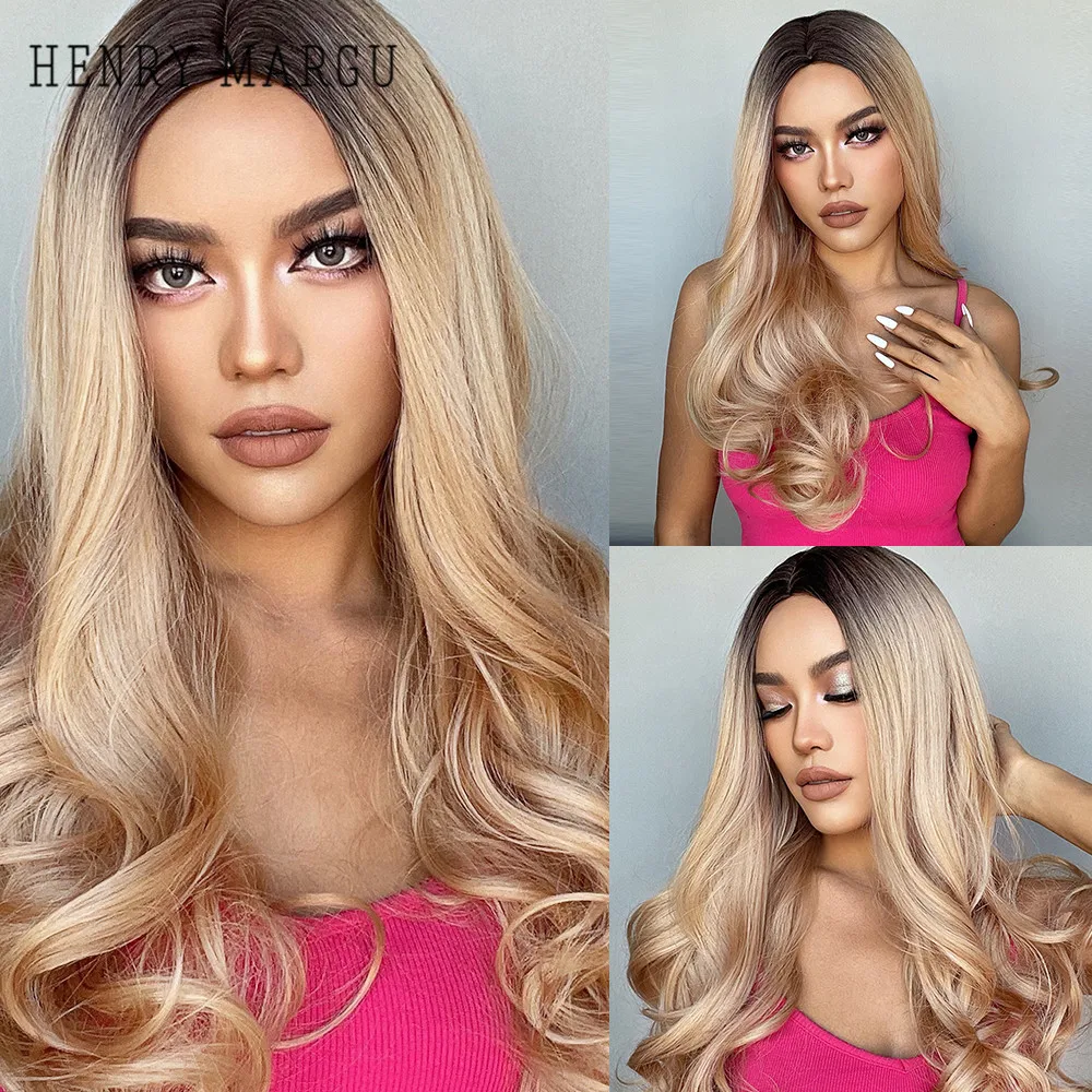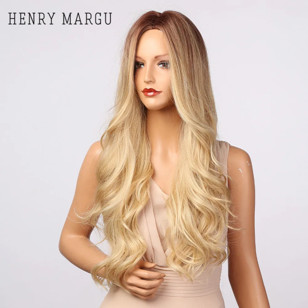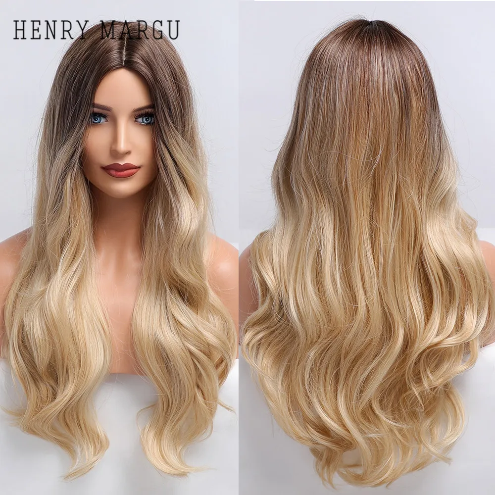 Длинные волнистые синтетические парики HENRY MARGU, коричневые и светлые волосы с Омбре, вечерние парики для косплея из термостойкого волокна для женщин
