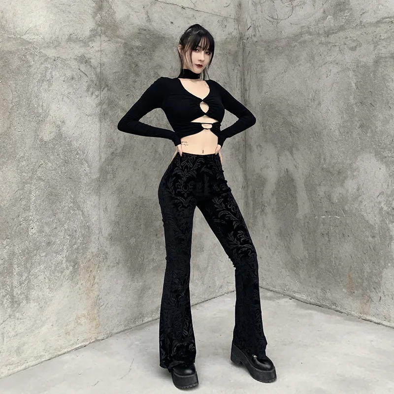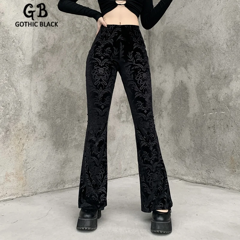 Женские бархатные брюки-клеш InsDoit, черные винтажные готические о...