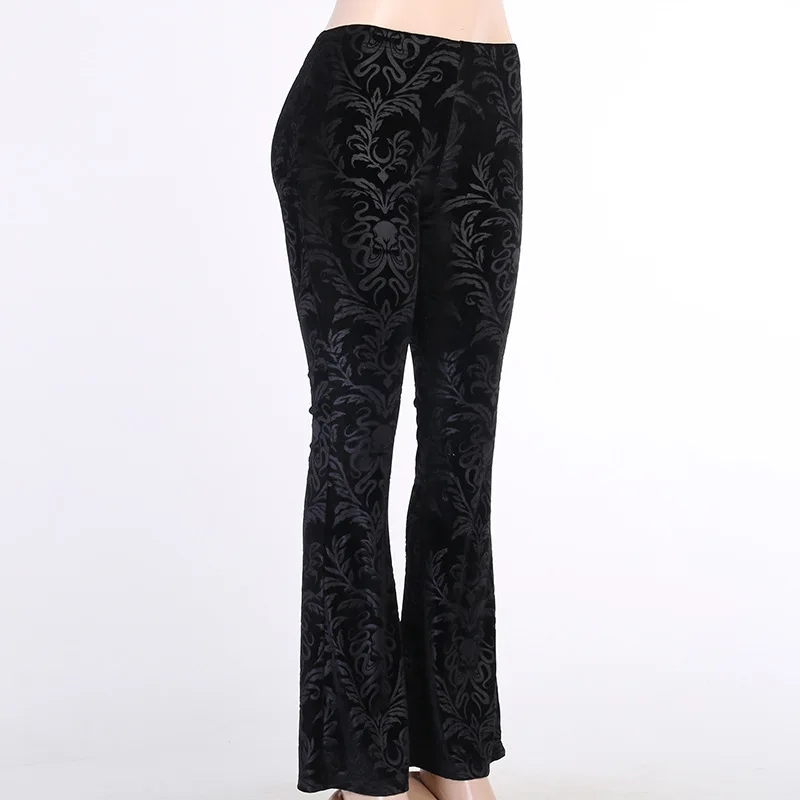 Готические черные винтажные облегающие замшевые однотонные расклешенные брюки Cthulhu с принтом, новые женские готические темные облегающие повседневные брюки с высокой талией на Хэллоуин