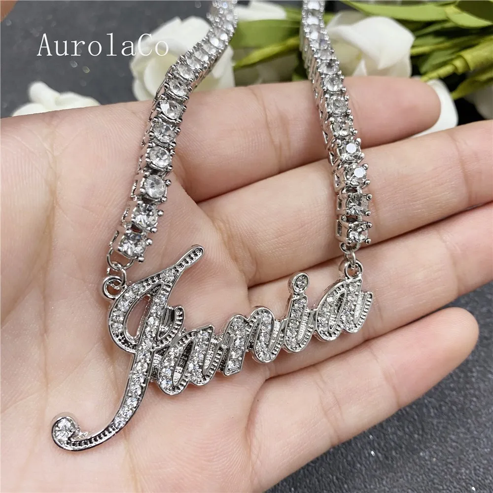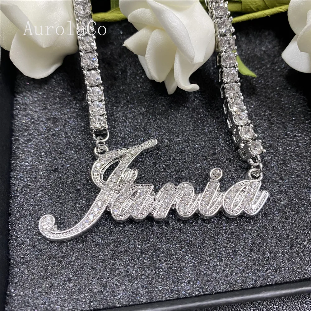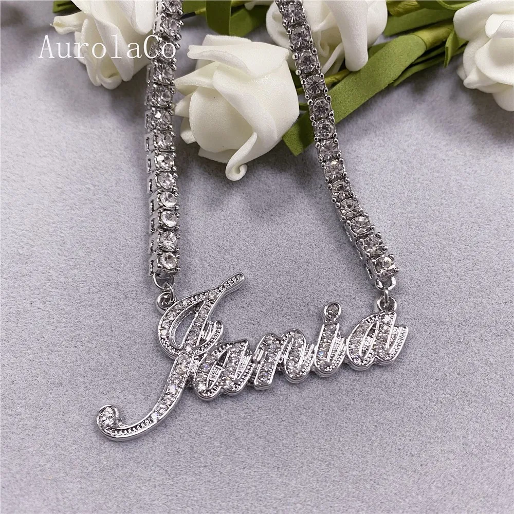 Ожерелье AurolaCo с именем под заказ, ожерелье с бриллиантом из нержавеющей стали, Золотое кулон-табличка с именем, ювелирные изделия, подарок на свадьбу