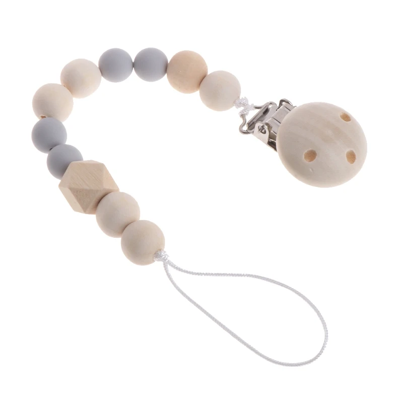Деревянная цепочка для соски, с бусинами, держатель для соски