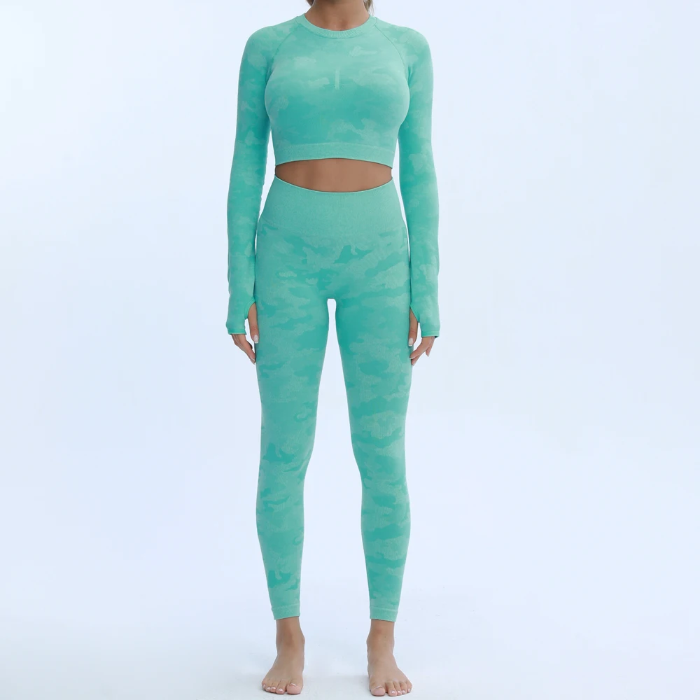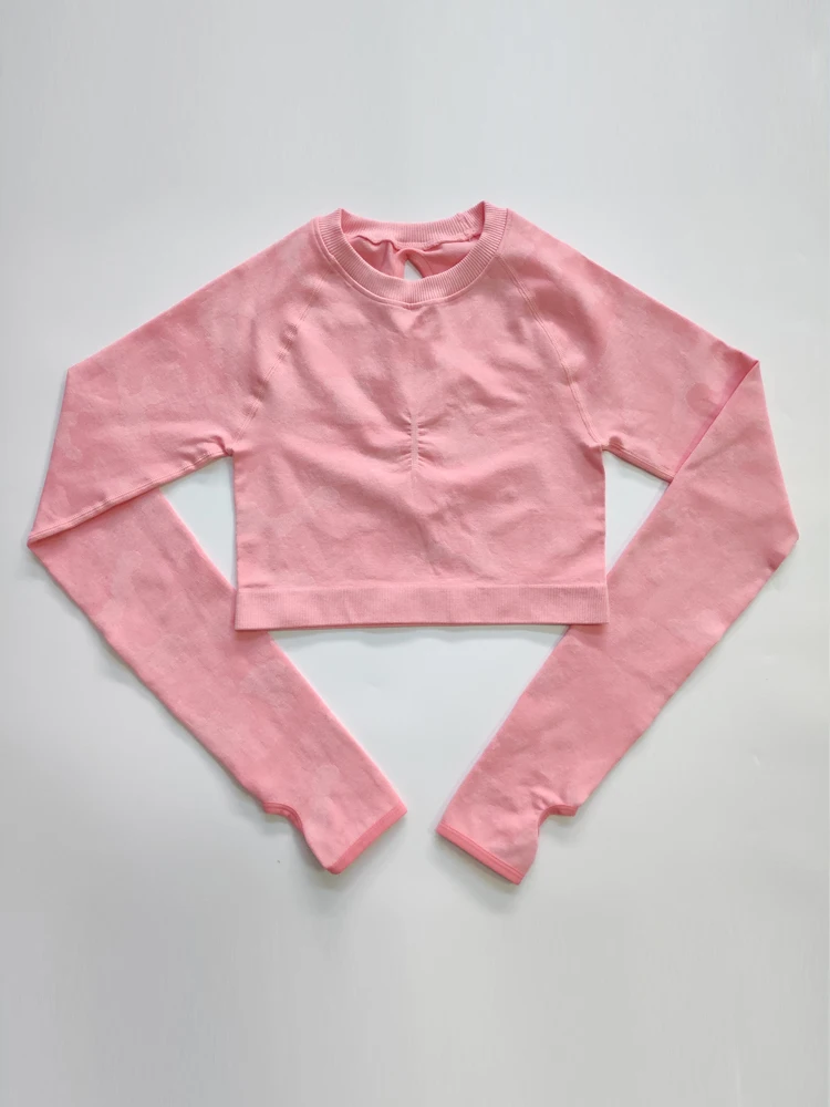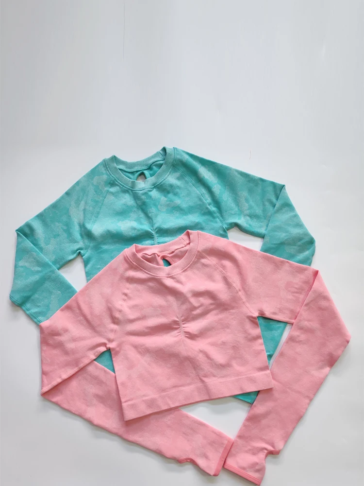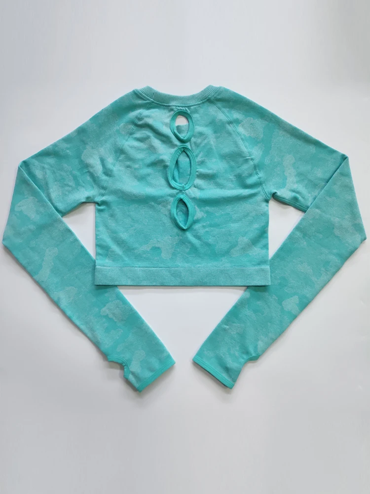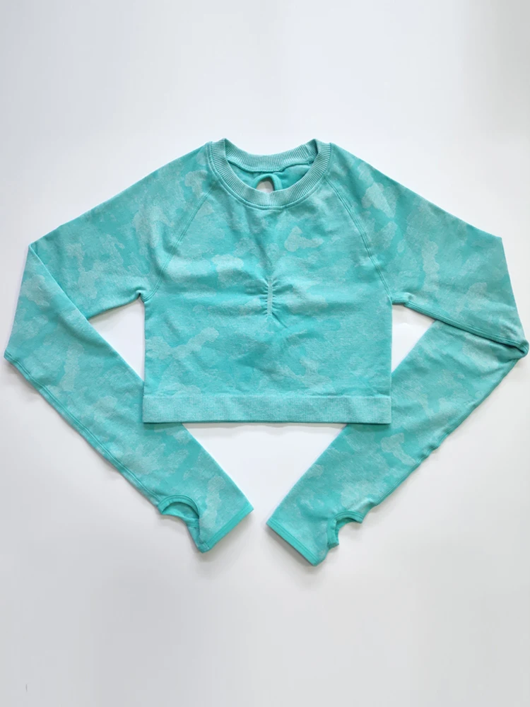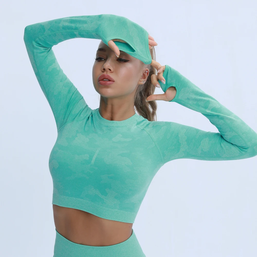 Женский бесшовный укороченный топ Nepoagym, с длинным рукавом и камуфляжным принтом, эластичные спортивные футболки для занятий йогой