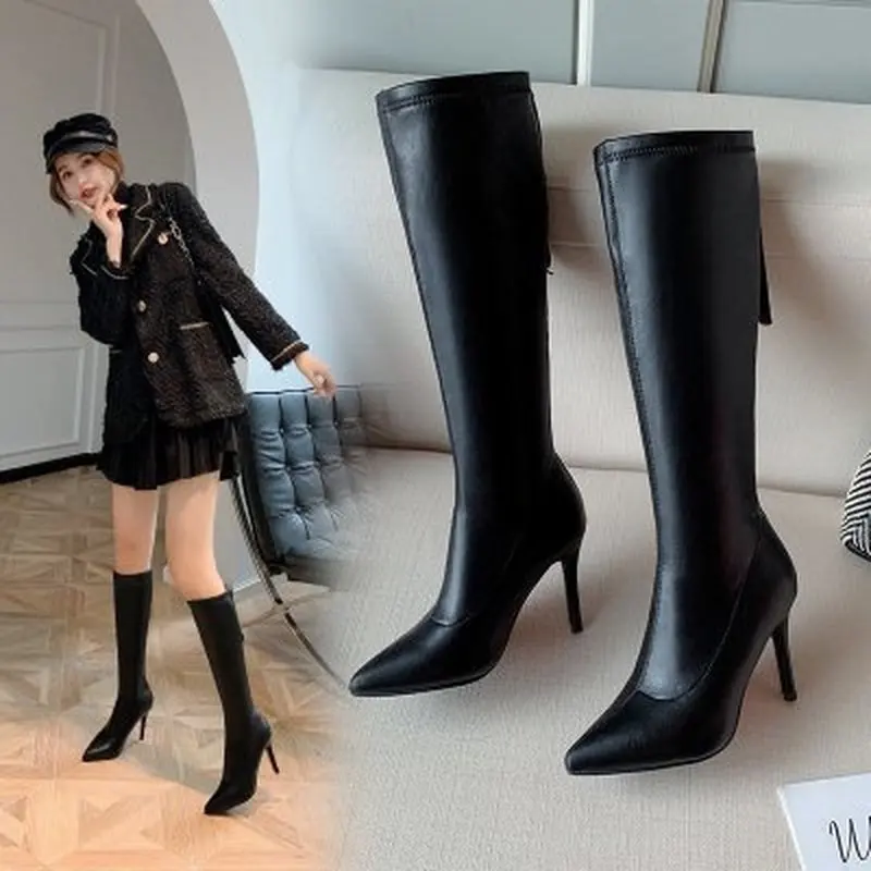 Пикантные белые женские высокие сапоги Ins 2020, высокие женские сапоги до бедра на тонком высоком каблуке, женская обувь, женские сапоги