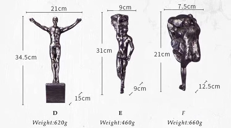 Материал: смолаВес: A:650 г | B:550 г | C:550 г | D:620 г | E:460 г | F:660 гНазвание продукта: скульптура для спортсмена в промышленном стиле, украшение для дома, украшения стенФункция: украшение дома, ремесла, подаркиРемесло: ручная работа, цвет: бронзовая скульптура, серебристо-серая скульптура