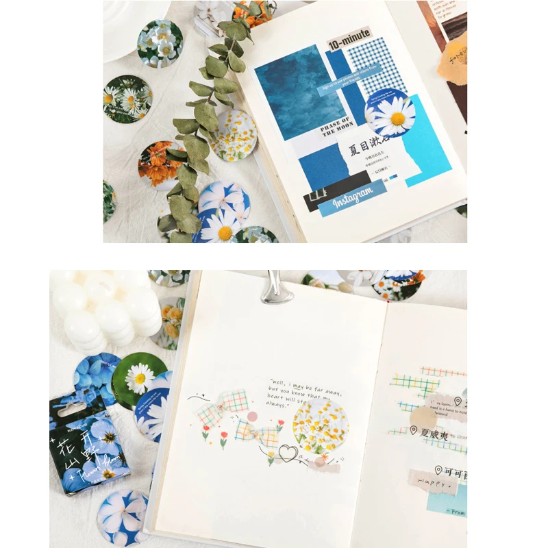Альбом для скрапбукинга сделай сам, компактная синяя наклейка для дневника, фотоальбома, студентов, цветов, 46 шт. в коробке