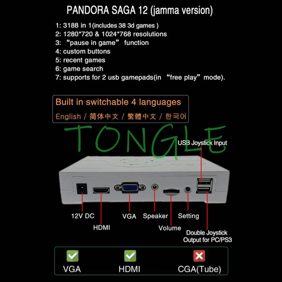 Бесплатная доставка Pandora Сага 12 коробка 3188 в 1 аркадная версия Jamma PCB для аркадных игр коробка для монет 3D видео игры HDMI VGA
