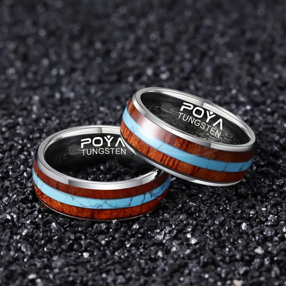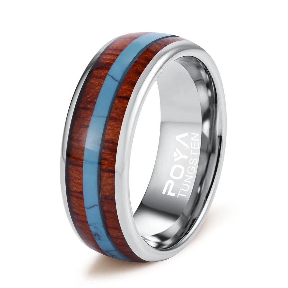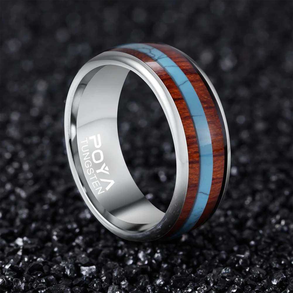POYA вольфрамовое кольцо дерево и Бирюзовая вставка обручальное кольцо для Для мужчин Для женщин Для мужчин полированный свободный крой