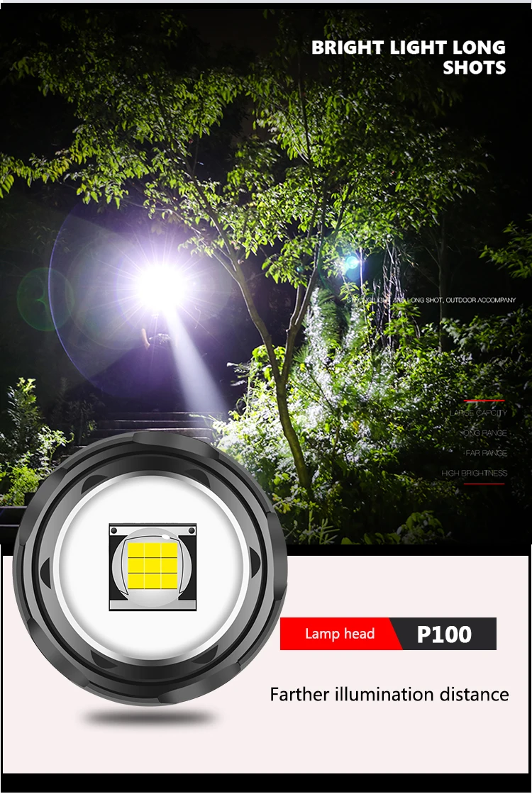 XHP100 Высококачественный 9-ядерный светодиодный фонарик, масштабир...