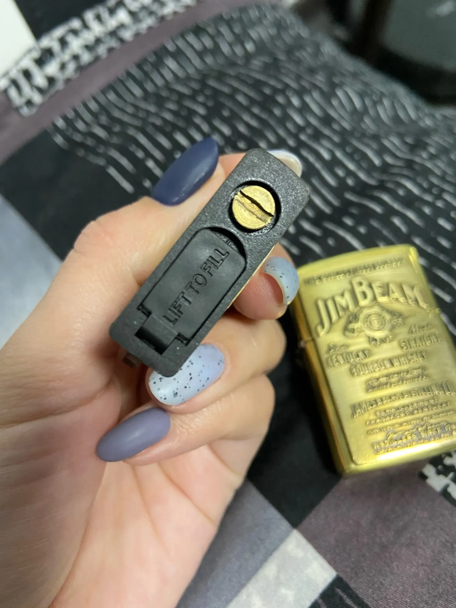 Очень удобная, можно положить запасной стержень под крышку - как раз есть подходящее углубление. К Zippo подошло, бензин не проливается. Крышка герметичная