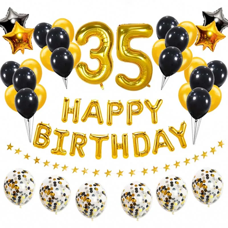 2 шт. 32 дюймов воздушные шары из фольги в виде цифр1 комплект 16 дюймов фольга письма с поздравлениями с днем рождения воздушные шары4 штуки, 18 дюймов воздушные шары из фольги в форме звезды6 шт. 12 дюймов конфетти воздушные шары12 шт 12-дюймовые прозрачные перламутровые латексные шары12 шт 12-дюймовые латексные воздушные шары из розового золота с жемчугом1 шт 4 метра бумажный Звездный баннерПримечание:Будет разница в цвете между цветом воздушного шара и изображением, прежде чем он будет надут.