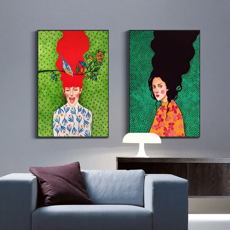 Абстрактные волосы девушки стены искусства холст живопись мода женщины цветы скандинавский плакат Настенные картины для гостиной Декор без рамы